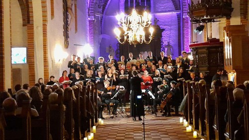Medvirkende er Sankt Hans Kirkes kantori, sangere fra Vokalensemblet Fyen samt korsangere fra hele Fyn, og det hele akkompagneres af et veloplagt orkester.