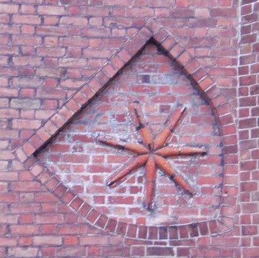 De fire lige lange korsarme er her spaltet i enderne og dermed et sikkert tegn på kirkens oprindelige forbindelse med johanitterklosteret, idet dette tegn var ordenens bomærke.